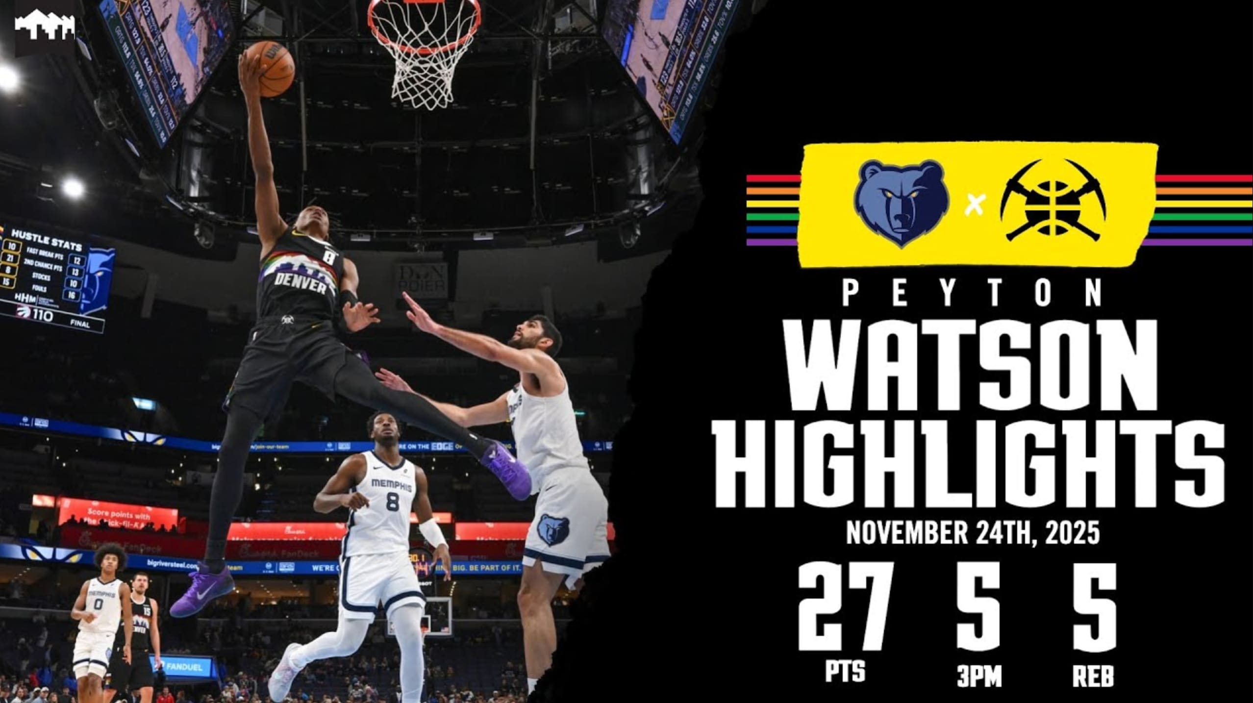 Watson supplied 27 points (11-22 FG, 5-12 3Pt), five rebounds, three assists, one block and one steal across 33 minutes during Monday's 125-115 win over Memphis.